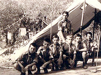 10-08-1968. Προσκοπικη κατασκηνωση Μακρης. Απο αριστερα ειναι οι Γιωργος Νικολαιδης, Τολης Βρανης, Λακης Λαζιδης, Μιμης Αραμπατζης [Αλβανια], Μπαμπης Κοντογιαννης και Βλασακουδης Γιαννης. Ορθιος ειναι ο Χατζησαβας Παντελης. Η φωτογραφία και τα σχόλια είναι από τον κ. Γιάννη Βλασακούδη.